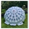 Pure cotton parasols for an English garden. They have a hand-blocked decorative upper canopy and a complementary hand-blocked decorative inner lining. The metal pole with a hinge allows them to be easily angled. They are light enough for one person to move easily so is ideal to take to a temporary setting such as a picnic or cricket match, as well as over a lunch table or pool bed. Base not included.